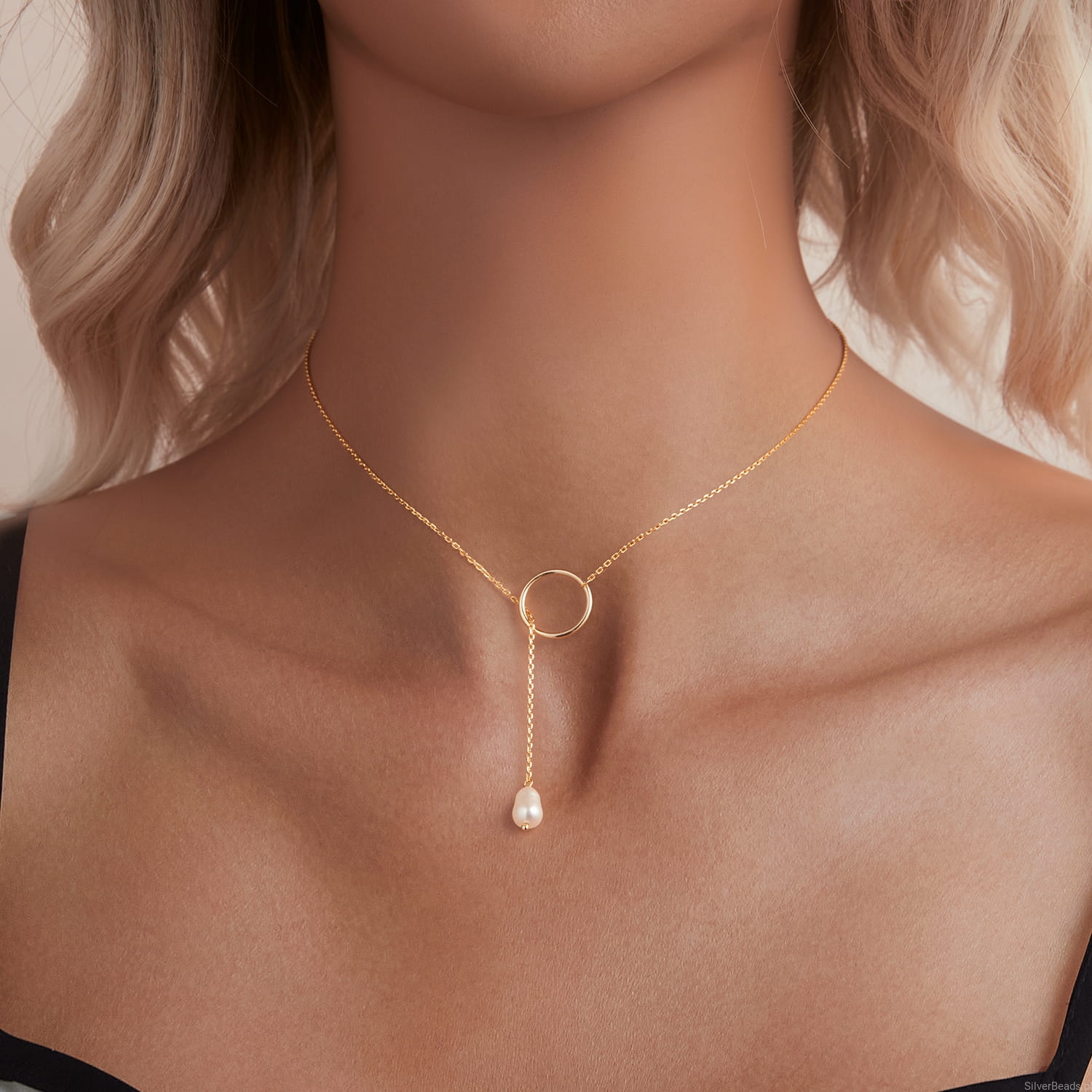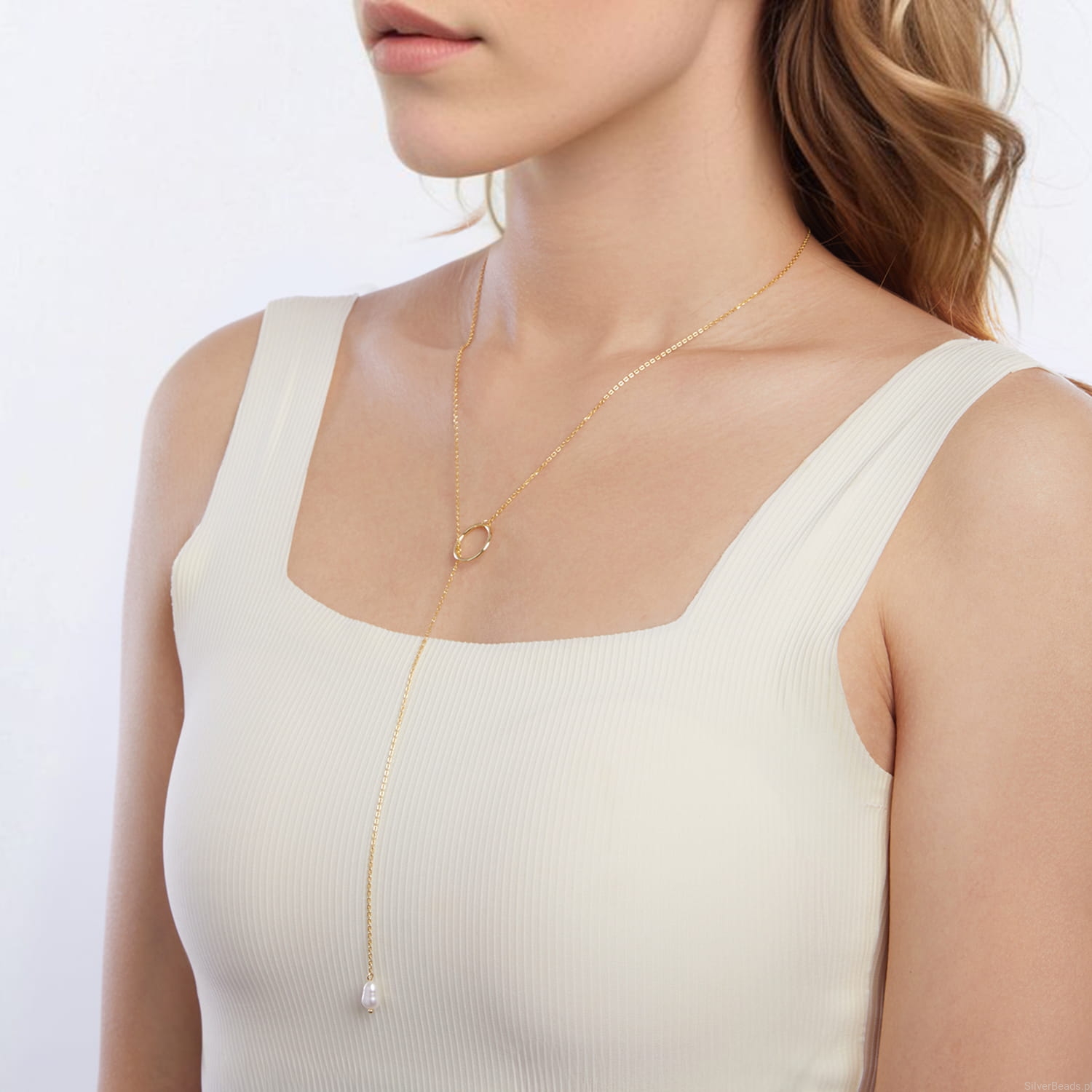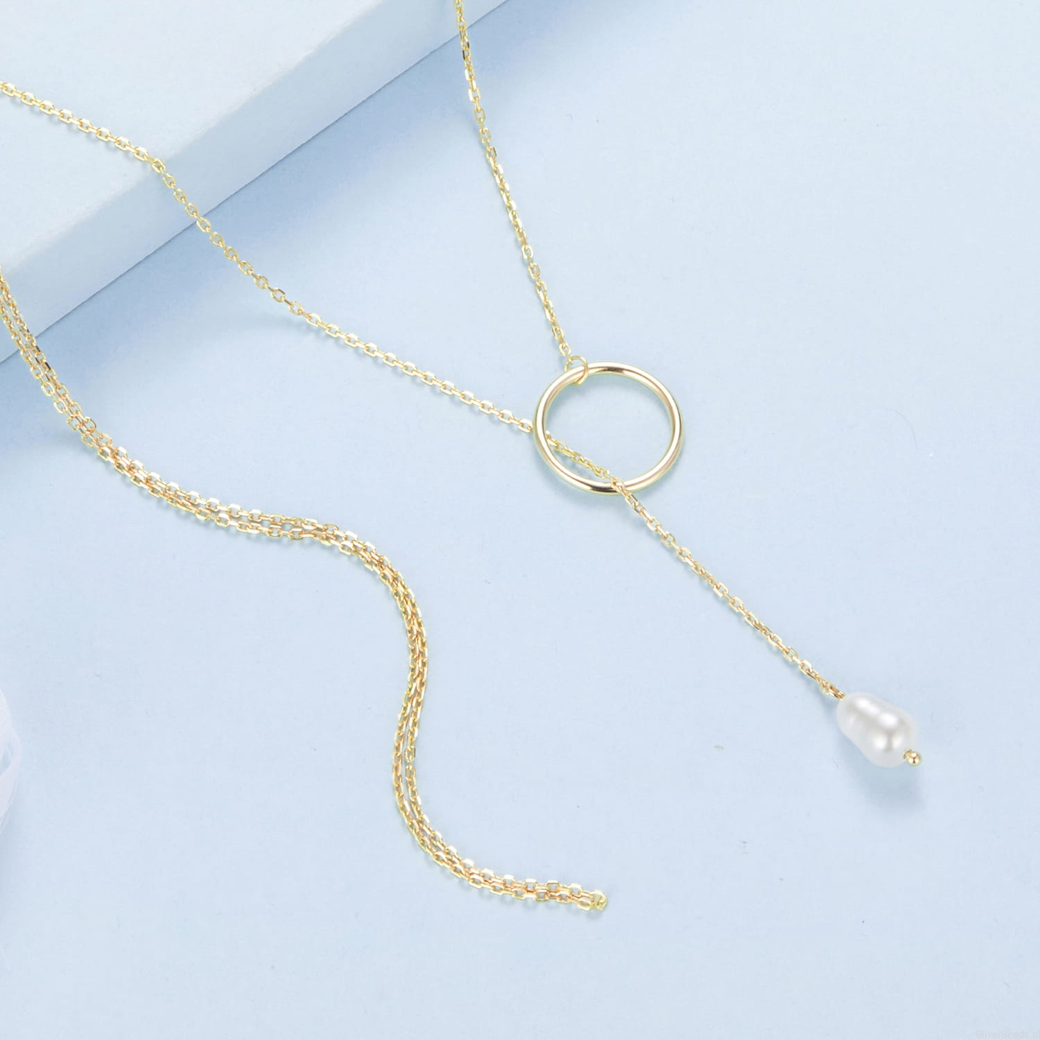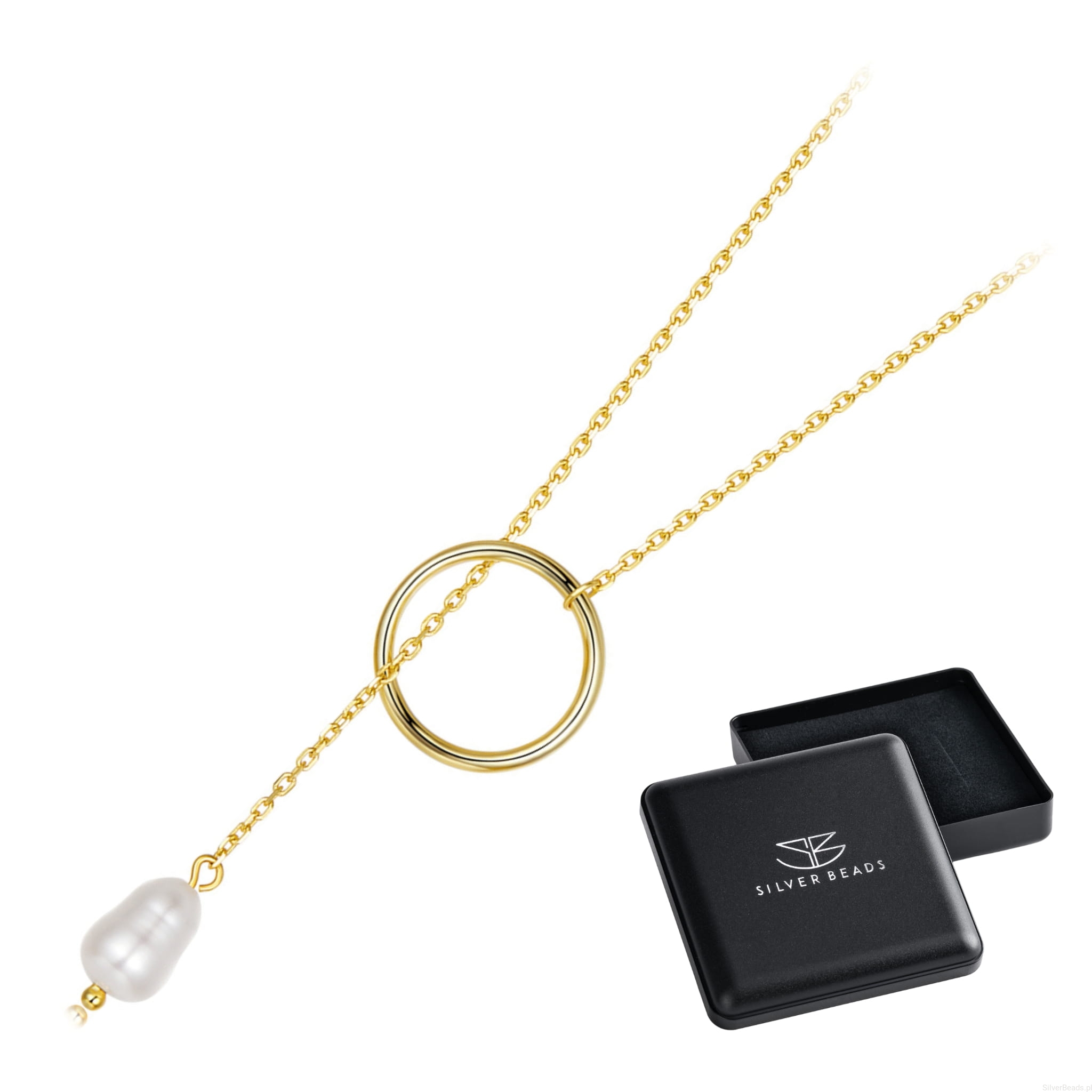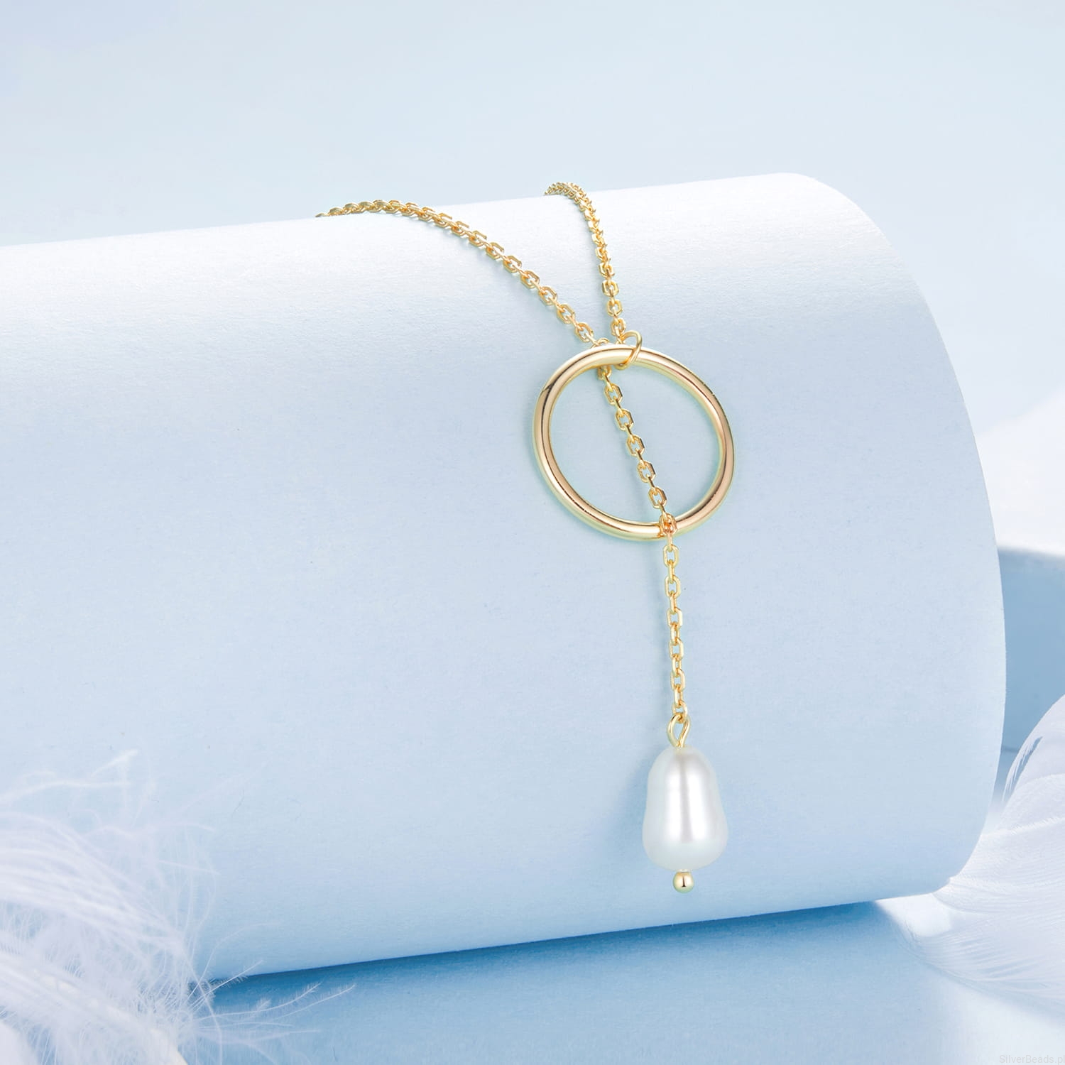 Srebrny pozłacany naszyjnik: kółko z perłą.