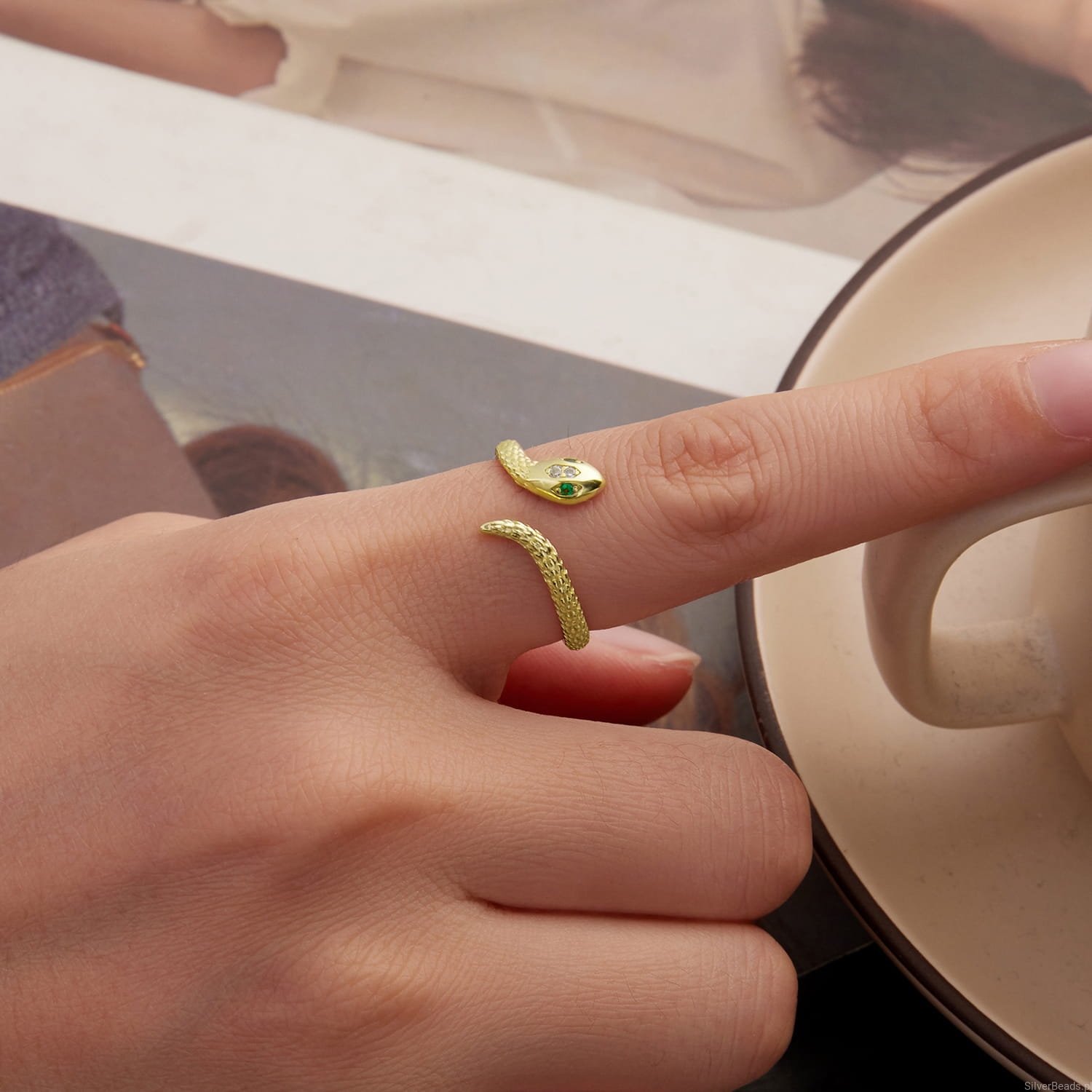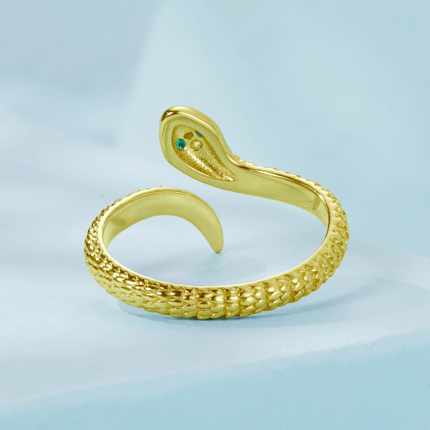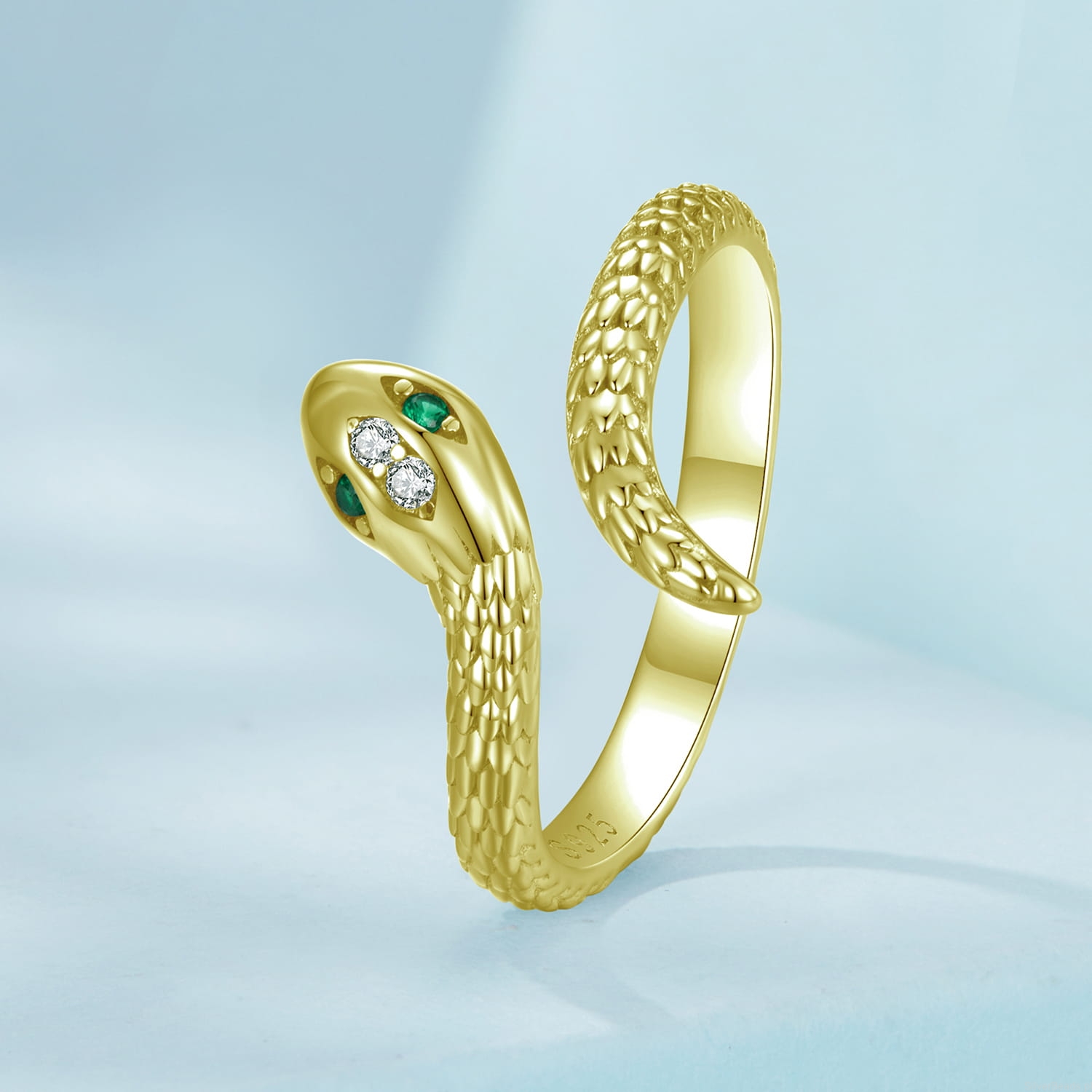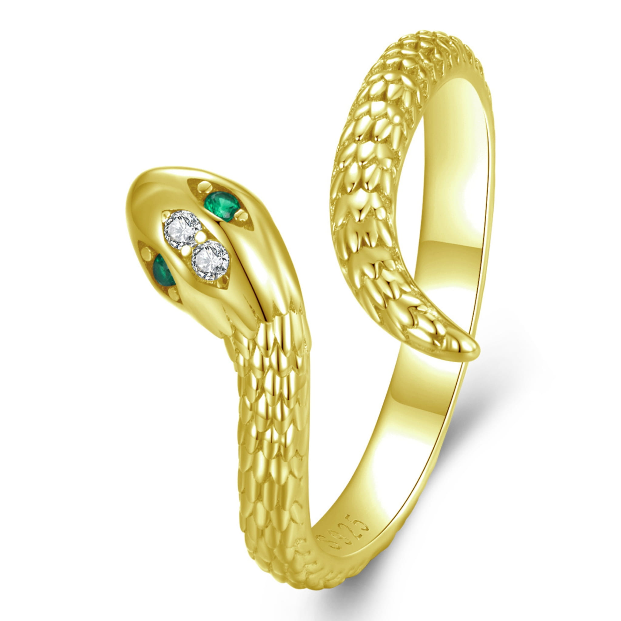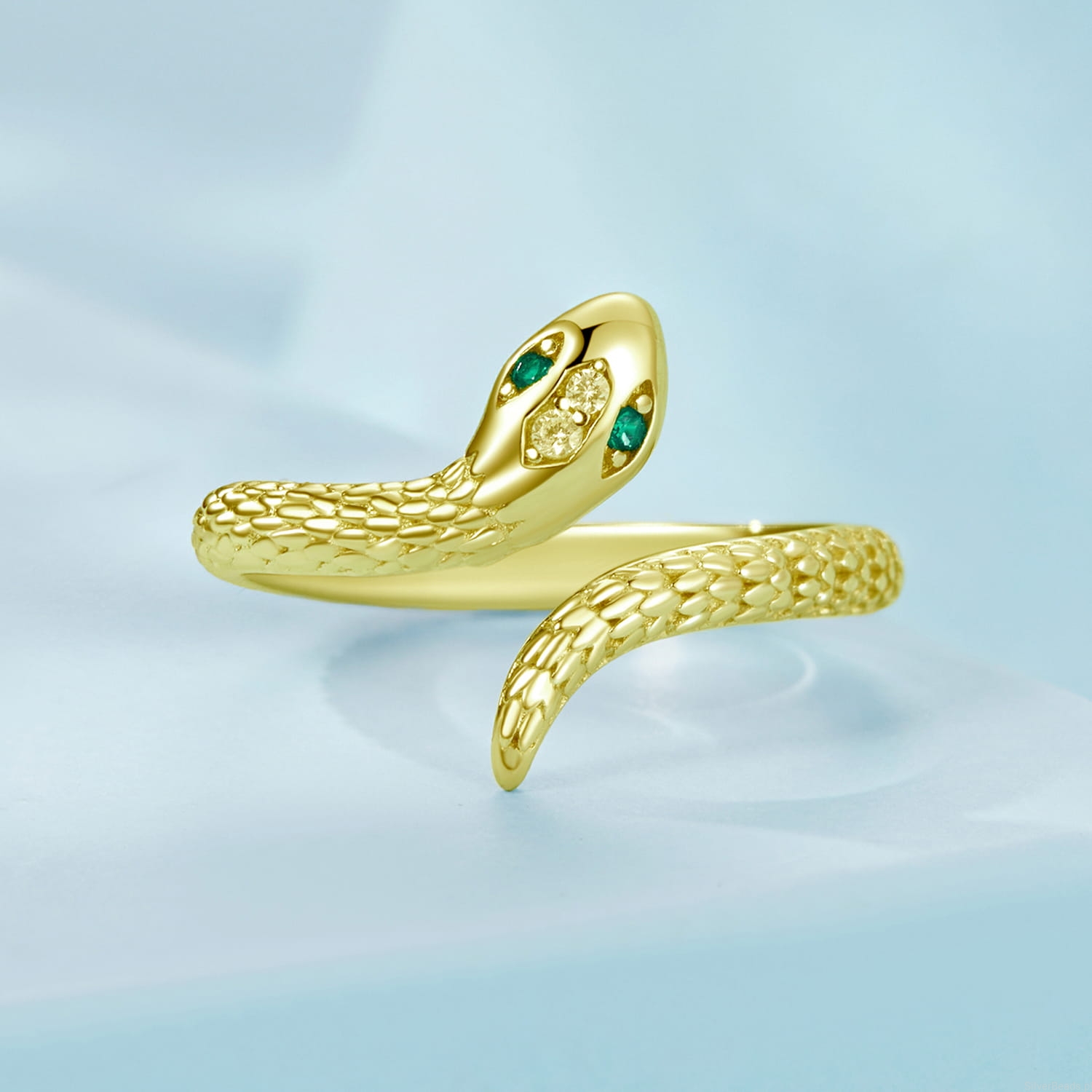 Srebrny regulowany pozłacany pierścionek zielonooki wąż.
