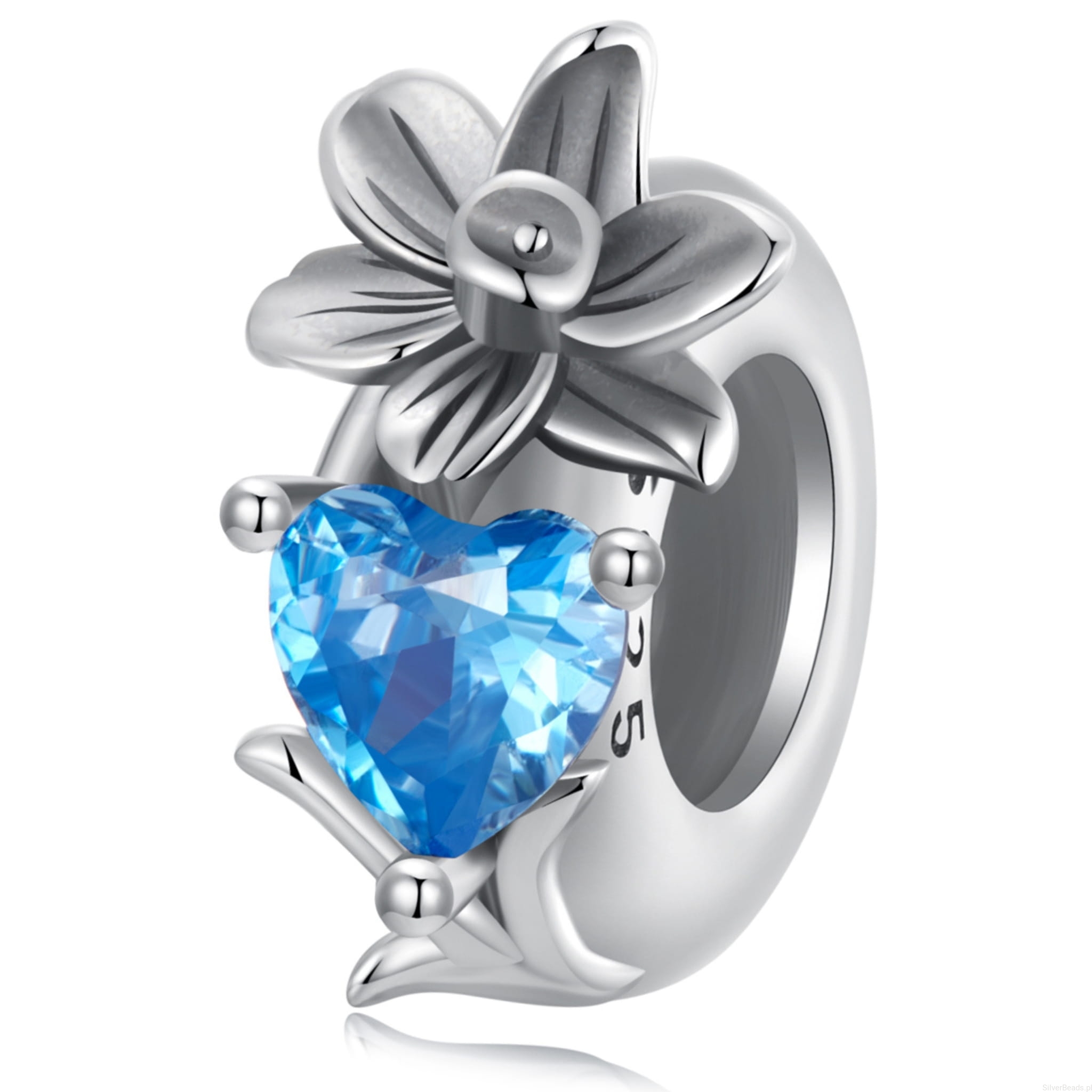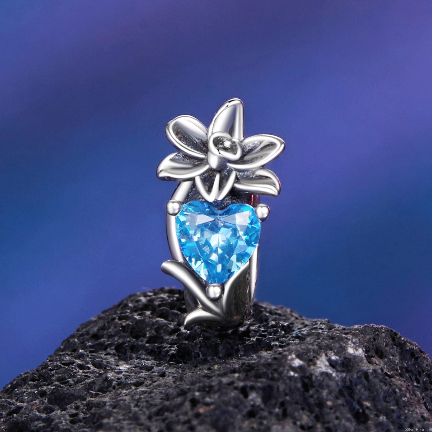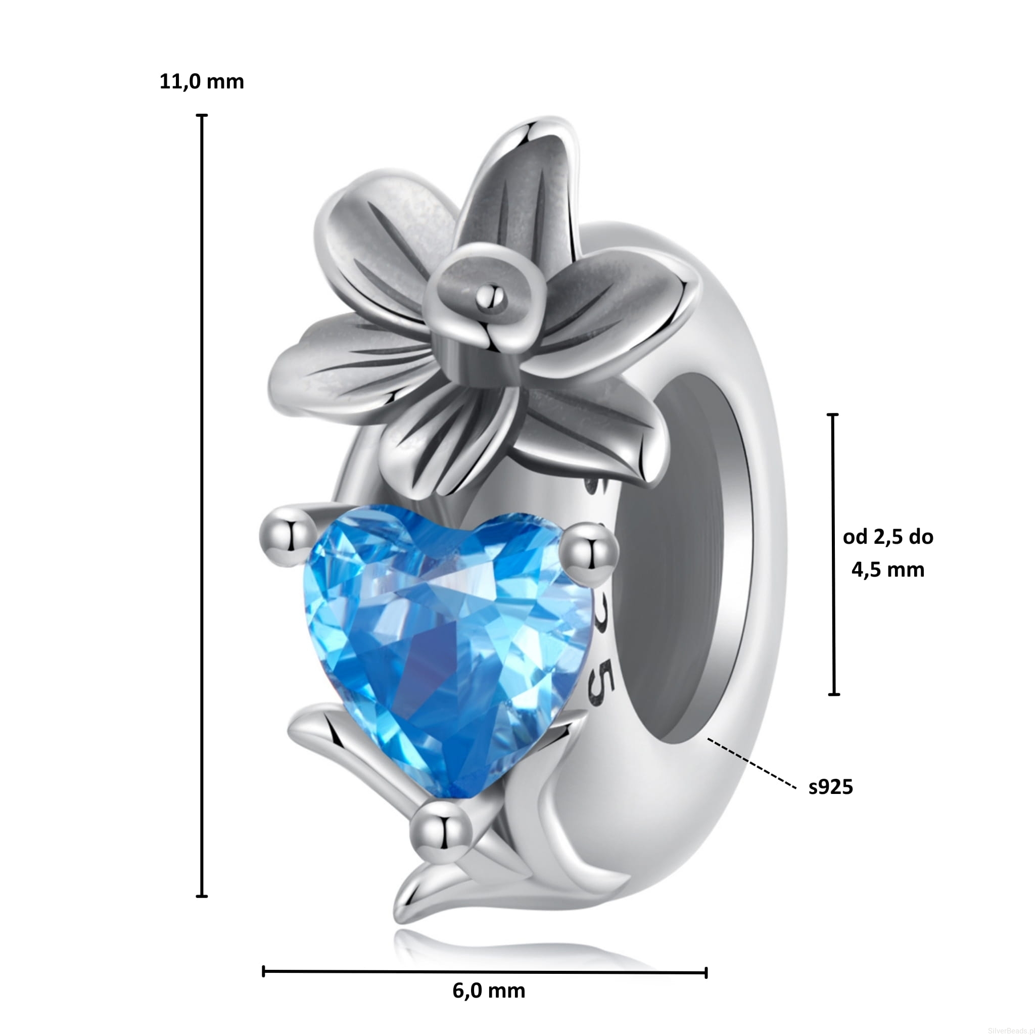 Srebrny stoper charms niebieskie serce i kwiat narcyz stoper do bransoletki srebro 925