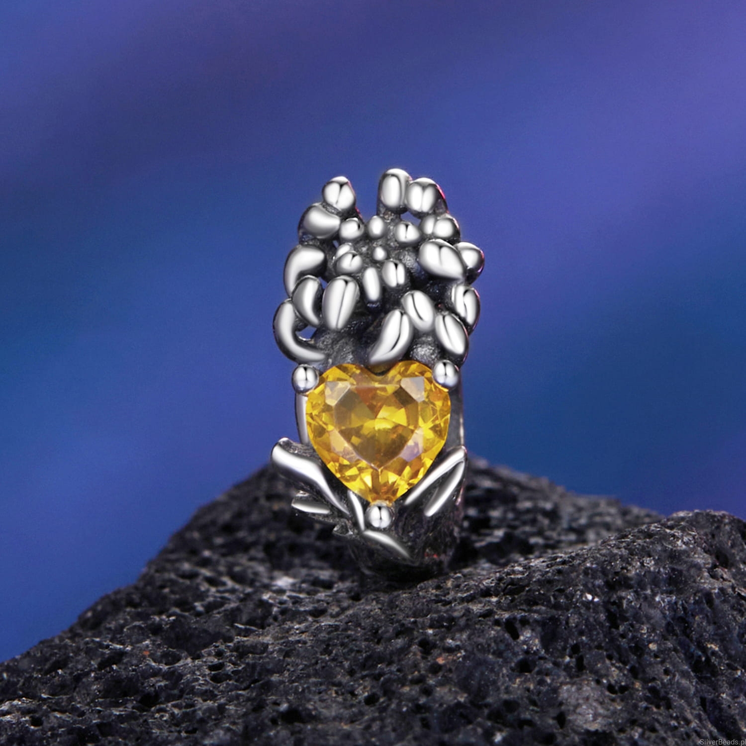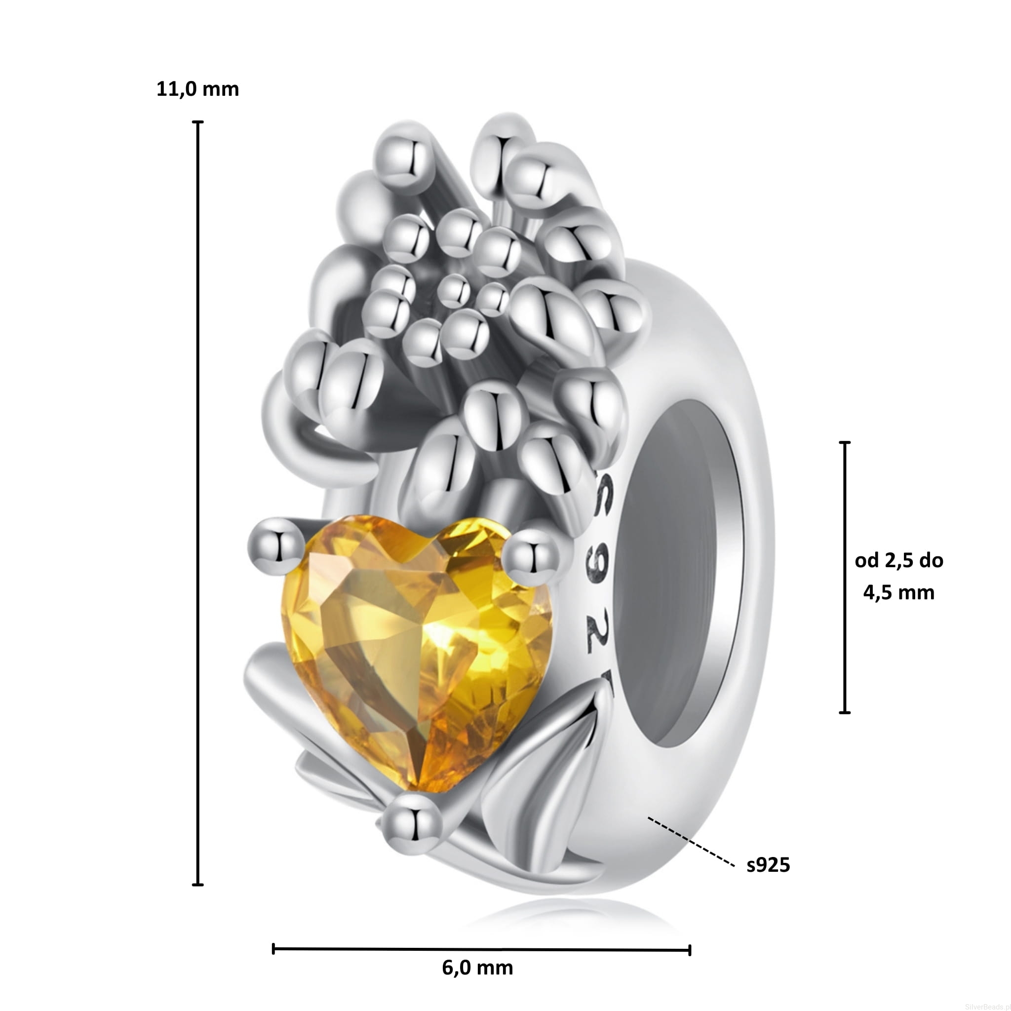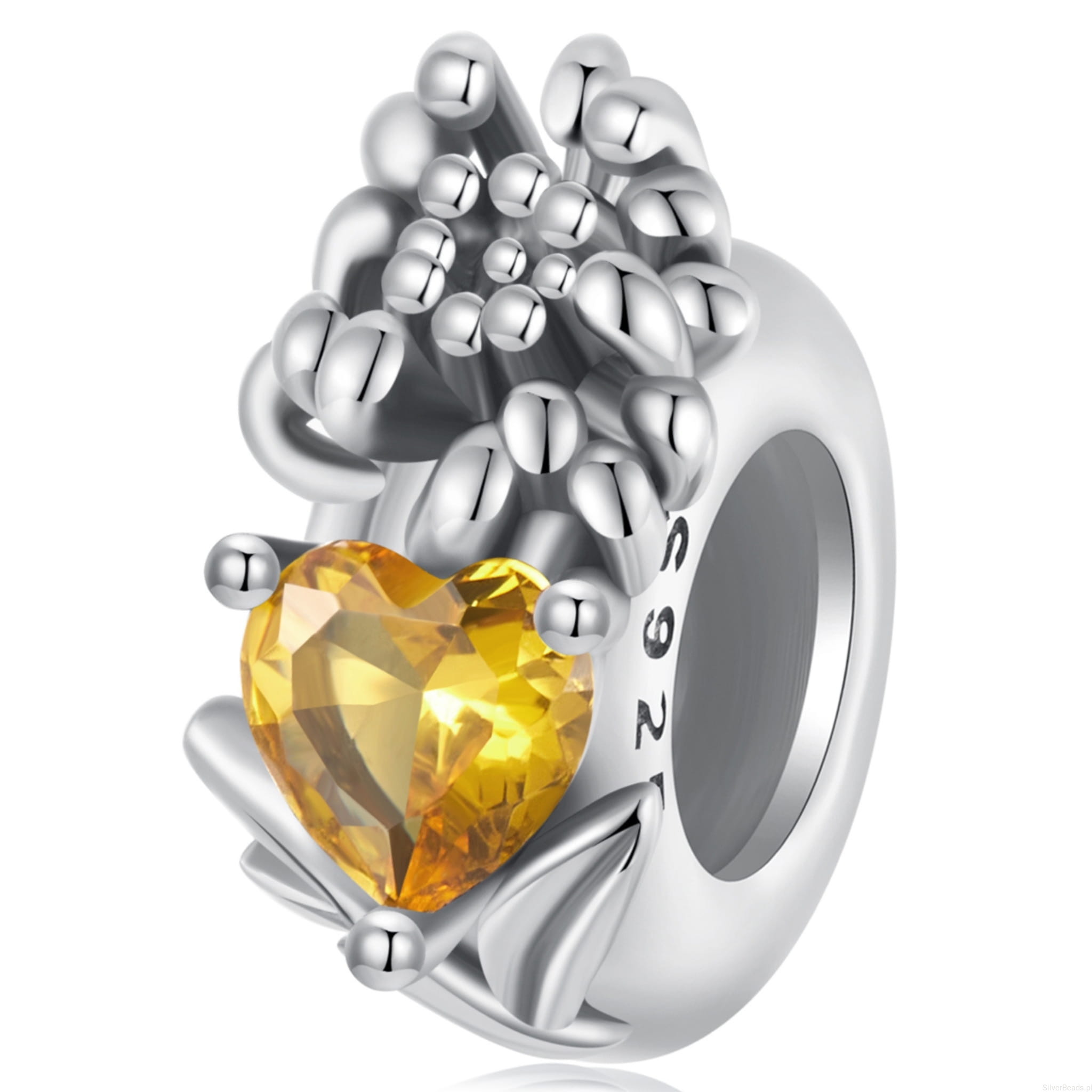 Srebrny stoper charms pomarańczowe serce i kwiat chryzantemy stoper do bransoletki srebro 925