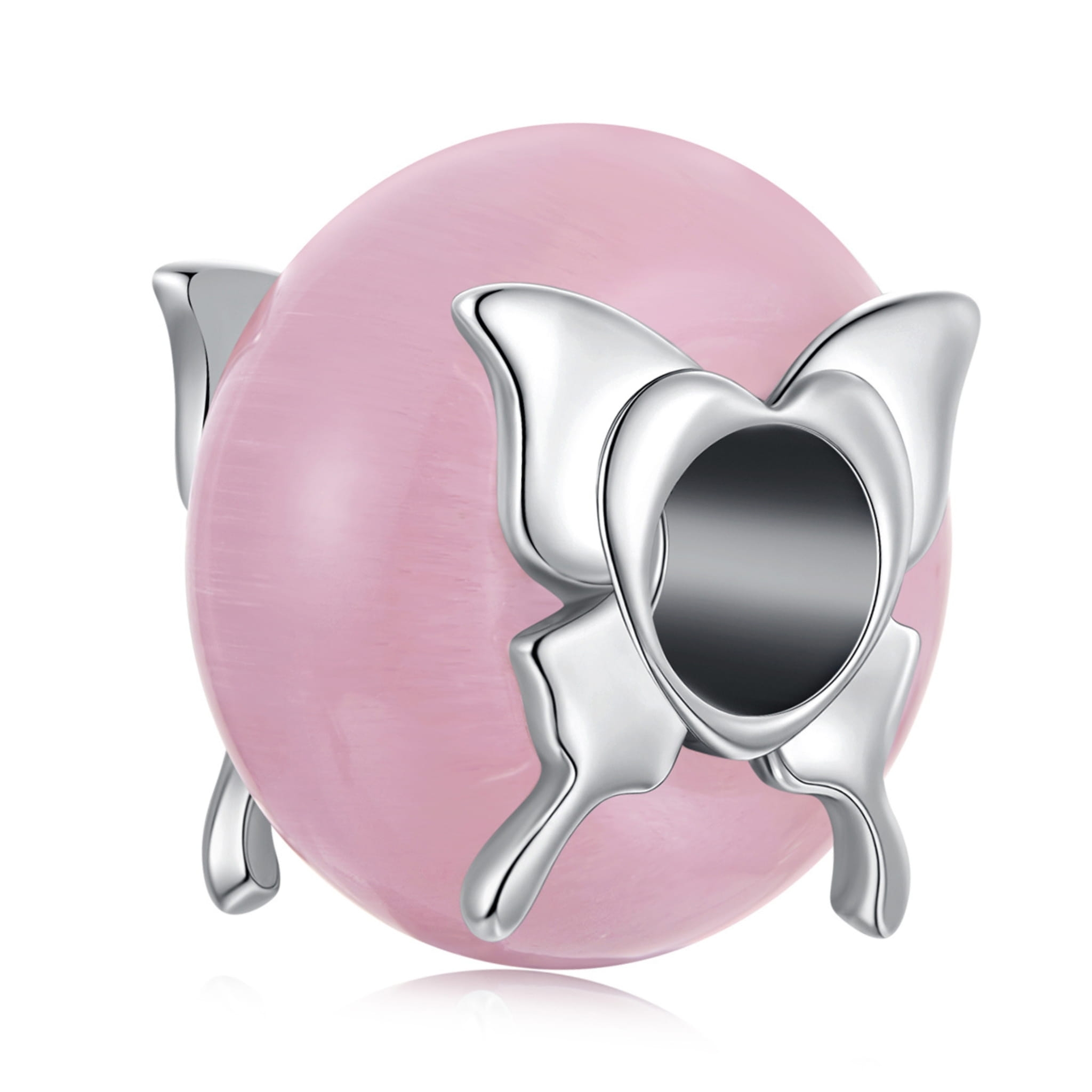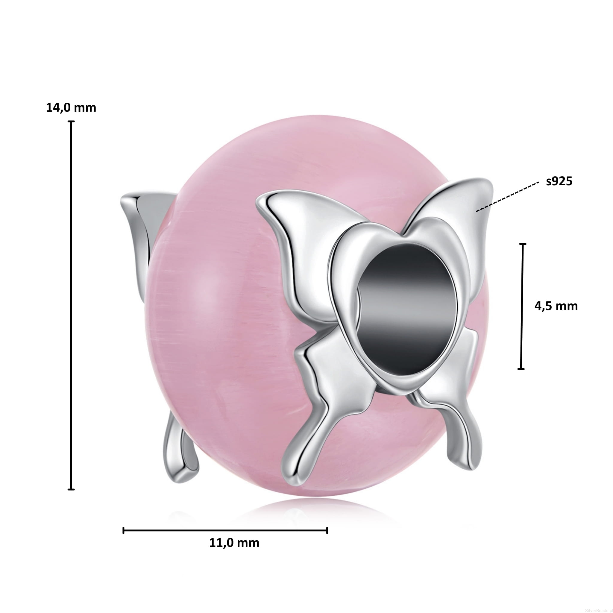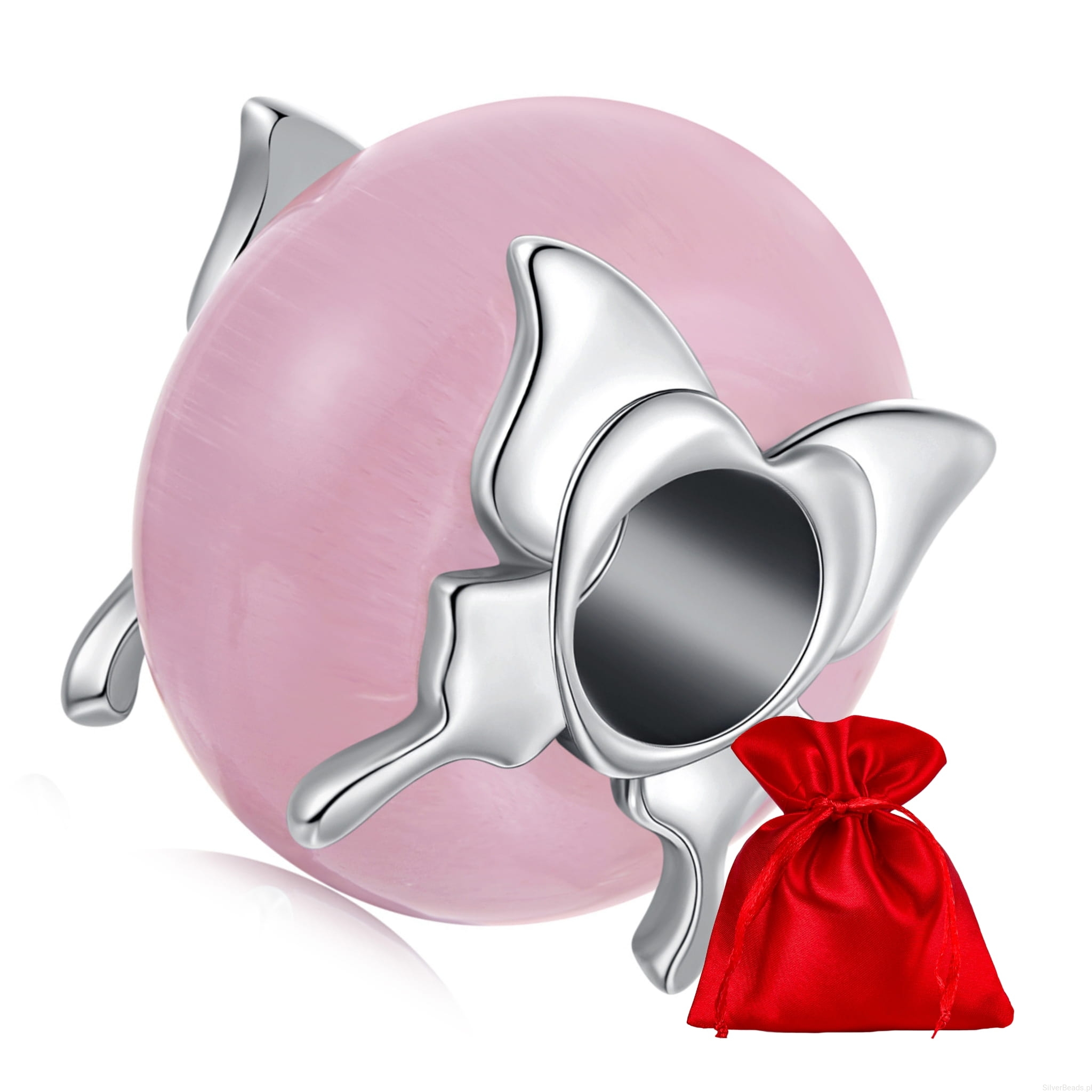 Szklany różowy charms z motylkami srebro 925 beads koralik